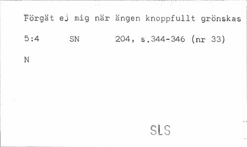 //// Förgät ej mig när ängen knoppfullt grönskas 5:4 SN 204, s.344-346 (nr 33) //// N //// SLS ////