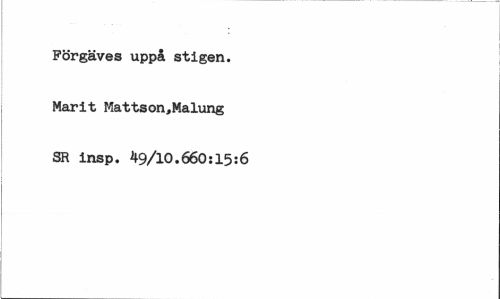 //// Förgäves uppå stigen. Marit Mattson,Malung SR insp. 49/10.660s15:6 ////