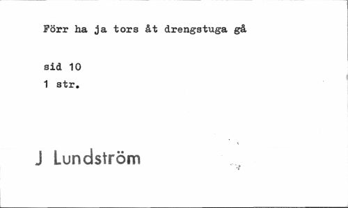 //// Förr ha ja tors åt drengstuga gå //// sid 10 1 str. //// j Lundström ////