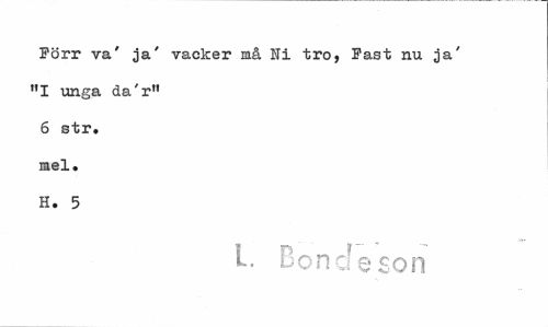 //// Förr va' ja' vacker må Ni tro, Fast nu ja' "I unga da'r" 6 str. mel. H. 5 //// i. Bondeson ////