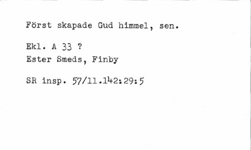 //// Först skapade Gud himmel, sen. //// Ekl. A 33 ? Ester Smeds, Finby //// SR insp. 57/11.29»5 ////