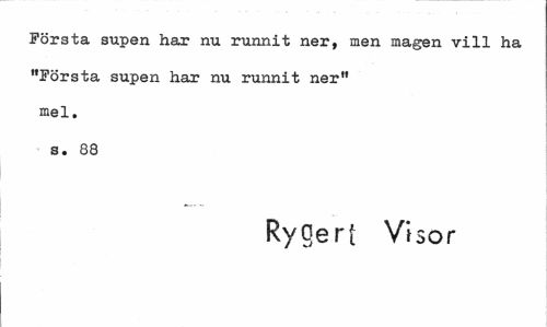 //// Första supen har nu runnit ner, men magen vill ha "Första supen har nu runnit ner" mel. s. 88 //// RyOert Visor ////