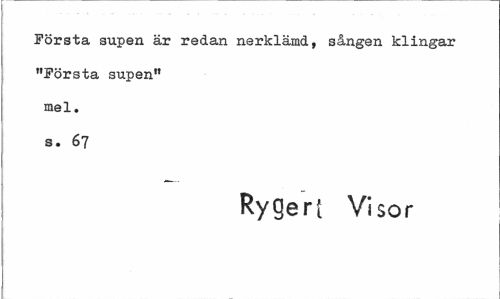 //// Första supen är redan nerklämd, sången klingar "Första supen" Kiel. s. 67 //// Rygert Visor ////