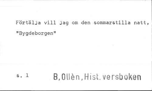 //// Förtälja vill Jag om den sommarstilla natt, "Bygdeborgen" //// s- 1 B,Ollen,Hist. versboken ////
