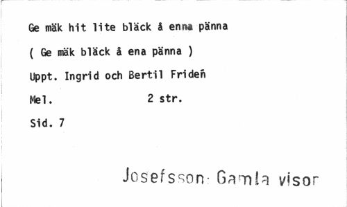 //// Ge mäk hit lite bläck å enna panna ( Ge mäk bläck å ena pänna ) Uppt. Ingrid och Bertil Friden Mel. 2 str. //// Sid. 7 //// Josefsson- Gamla visor ////