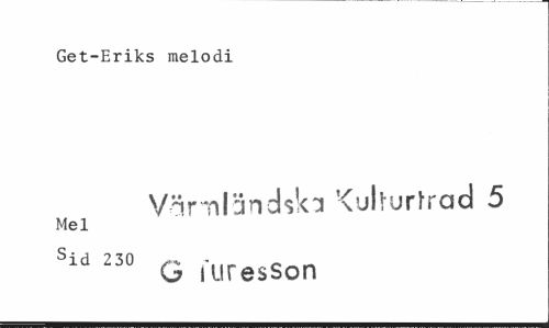 //// Get-Eriks melodi //// VärTilärichlo Kulturråd 5 //// Mel //// sid 230 ~ -lirA(>Crtn //// O lUresSon ////