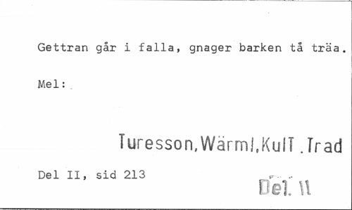 //// Gettran går i falla, gnager barken tå träa. Mel: //// Turesson,Wärmi,KufT .Trad //// Del II, sid 213 .. //// Del U ////