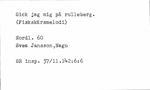 //// Gick jag mig på rulleberg. (FiskskärsmelocLi) //// Nordl. 60 //// Svea Jansson,Nagu //// SR insp. 57/ll.l*+2;6s6 ////