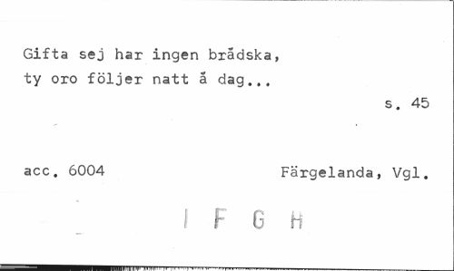 //// Gifta sej har ingen brådska, ty oro följer natt å dag... //// s. 45 //// acc. 6004 Färgelanda, Vgl. //// ^ I F G H ////