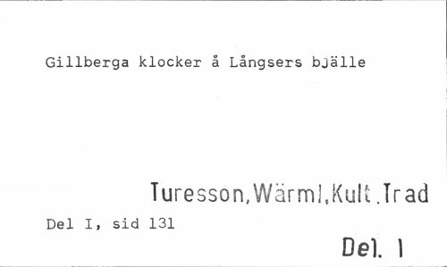 //// Gillberga klocker å Långsers bjälle //// Turesson, Wärml,Kult .Träd //// Del I, sid 131 //// Del. 1 ////