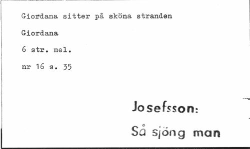 //// Giordana sitter på sköna stranden Giordana 6 str. mel. nr 16 s. 35 //// Josefsson: //// Sj sjöng man ////