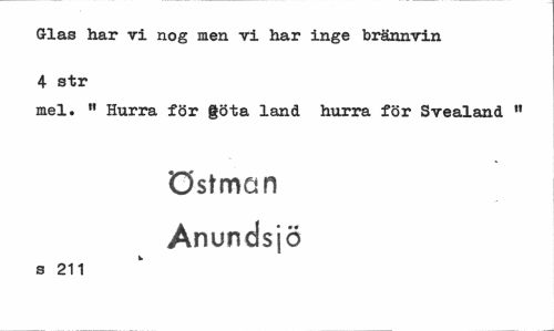//// Glas har vi nog men vi har inge brännvin 4 str //// mel. 11 Hurra för göta land hurra för Svealand " //// östman Anundsjö //// s 211 ////
