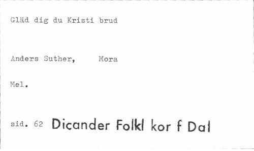 //// Gläd dig du Kristi brud //// Anders Suther, Mora //// Mel. //// sid. 62 Dicander Folkl kor f Dal ////