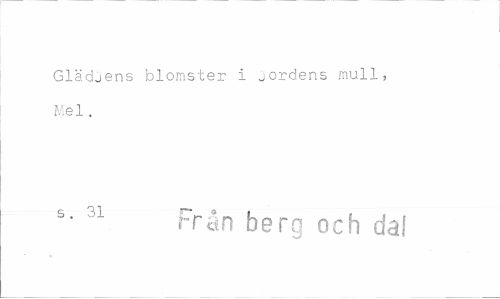 //// Glädjens blomster I jordens mull, Mel. //// s< 31 rrån berg och dal ////