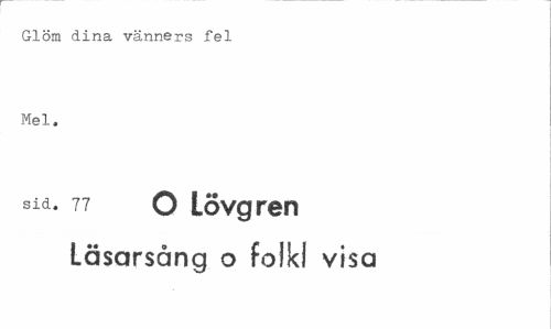 //// Glöm dina vänners fel Mel, //// sid. 77 O Lövgren //// Läsarsång o folkl visa ////