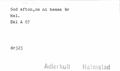 //// God afton,om ni hemma är Mel. //// Ekl A 67 Nr323 //// Adterkull Halmstad ////