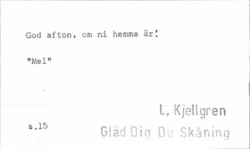 //// God afton, om ni hemma är! "Mel" //// L, tCjetlgren //// S .15 f* é • j\ p> • r\ /"> f //// Glad Dig Du Skåning ////