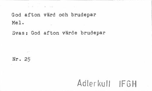 //// God afton värd och brudepar Mel. //// Svas: God afton värde brudepar Nr. 2$ //// Adlerkull IFGH ////