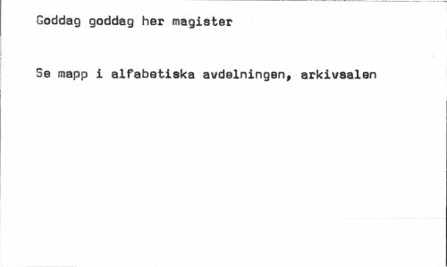 //// Goddag goddag her magister //// Se mapp i alfabetiska avdelningen, arkivsalen ////