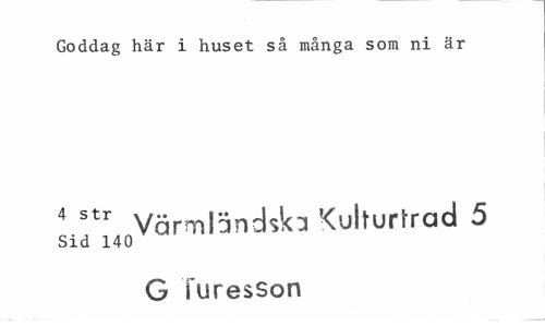 //// Goddag här i huset så många som ni är //// 4 str Värmländsks Kulturhrad 5 //// Sid 140 //// G furesson ////