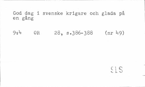 //// God dag i svenske krigare och glada på en gång //// 9:^ OR 28, s.386-388 (nr k.9) //// as ////