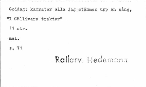 //// Goddagi kamrater alla jag stämmer upp en sång, "I Gällivare trakter" 11 str. mel. s. 71 //// Ra ib rv. Hed e m c: n .1 ////