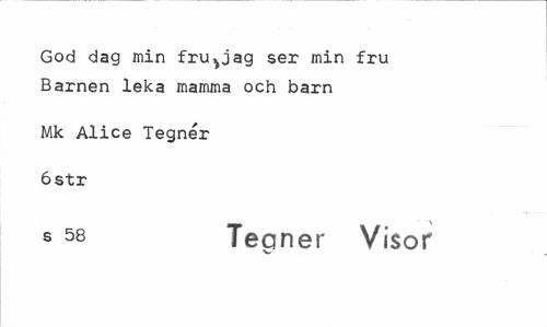 //// God dag min fru^jag ser min fru Barnen leka mamma och barn //// Mk Alice Tegnér //// 6str //// s ss Tegner Visor ////