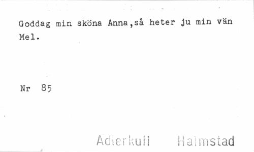 //// Goddag min sköna Anna,så heter ju min vän Mel. //// Nr 85 //// Acite r ku i i Halmstad ////