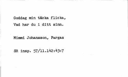 //// Goddag min täcka flicka, Vad har du i ditt sinn. //// Mimmi Johansson, Pargas //// SR insp. 57/11.142:43:7 ////