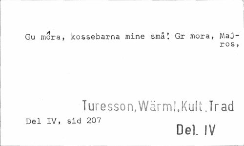 //// Gu mora, kossebarna mine små'. Gr mora, Majros , //// Turesson, Wärm), Kult; Tr ad //// Del IV, sid 207 //// Del. IV ////