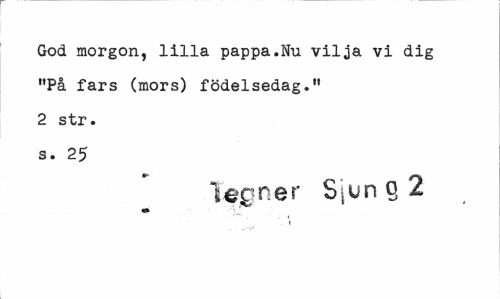 //// God morgon, lilla pappa.Nu vilja vi dig "På fars (mors) födelsedag." 2 str. s. 25 //// legner Sjun Q 2 //// . i ////