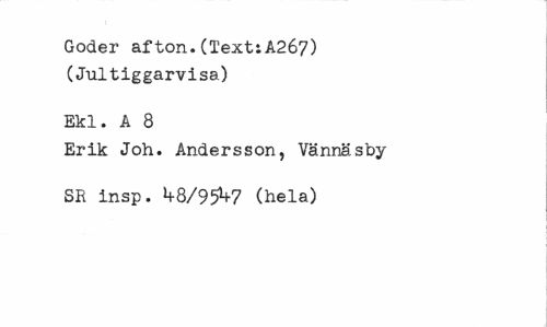 //// Göder afton.(Text:Å267) (Jultiggarvisa) //// Ekl. A 8 //// Erik Joh. Andersson, Vännäsby SR insp. W95(hela) ////