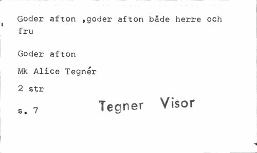 //// Göder afton ,göder afton både herre och //// i //// fru //// Göder afton Mk Alice Tegnér 2 str //// 7 Tegner Visor ////