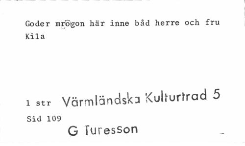 //// Göder mröigon här inne båd herre och fru Kila //// i str Värmländska Kulturhrad 5 //// Sid 109 //// G TuresSon ////