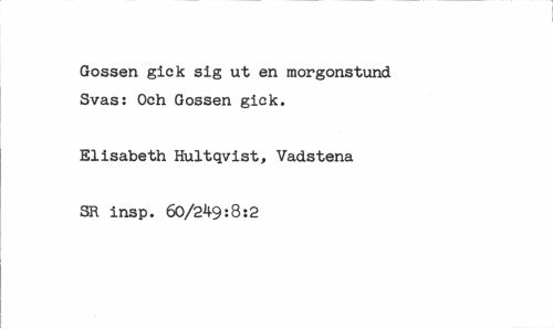 //// Gossen gick sig ut en morgonstund Svas: Och Gossen gick. //// Elisabeth Hultqvist, Vadstena //// SR insp. 60/249:8:2 ////