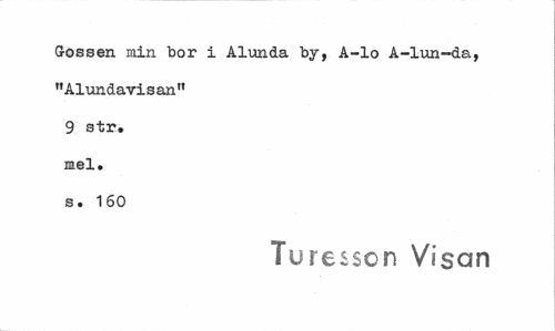 //// Gossen min bor i Alunda by, A-lo A-lun-da, "Alundavisan" 9 str. mel. s. 160 //// Turesson Visan ////