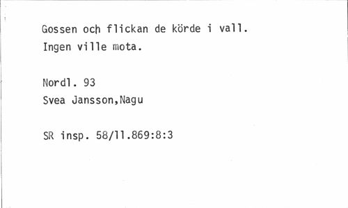 //// Gossen och flickan de körde i vall. Ingen ville mota. //// Nordl. 93 //// Svea Jansson,Nagu //// SR insp. 58/11.869:8:3 ////