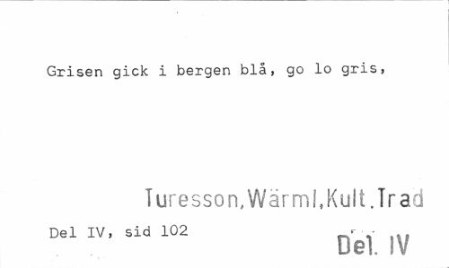 //// Grisen gick i bergen blå, go lo gris, //// Turesson. Wärml, Kult. Träd //// Del IV, sid 102 r //// Del IV ////