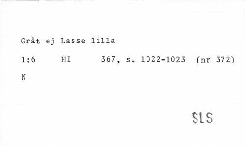 //// Grät ej Lasse lilla //// 1:6 Hl 367, s. 1022-1023 (nr 372) //// N //// SIS ////