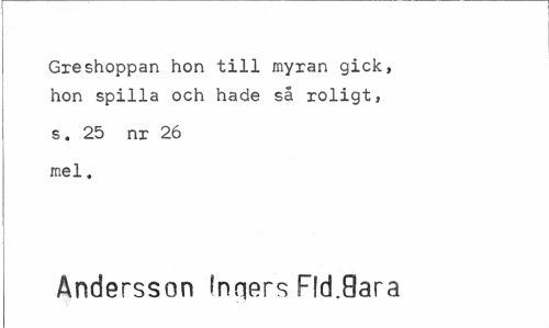 //// Greshoppan hon till myran gick, hon spilla och hade så roligt, //// s. 25 nr 26 //// mel. //// Andersson fnqers Fld.Sara ////