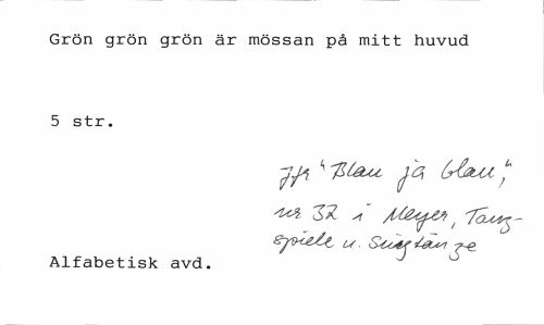 //// Grön grön grön är mössan på mitt huvud 5 str. //// ^ h 'filéLct ja C^JSUI / //// ¦¦ a' /J&ffM f Tou^-sj^U/^, u //// Alfabetisk avd. ////