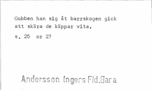 //// Gubben han sig åt barrskogen gick att skära de käppar vita, //// s. 25 nr 27 //// Andersson fngers Rd.Oara ////