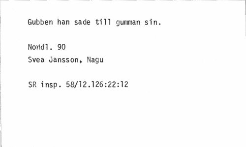 //// Gubben han sade till gumman sin. Noridl. 90 //// Svea Jansson, Nagu SR insp. 58/12.126:22:12 ////