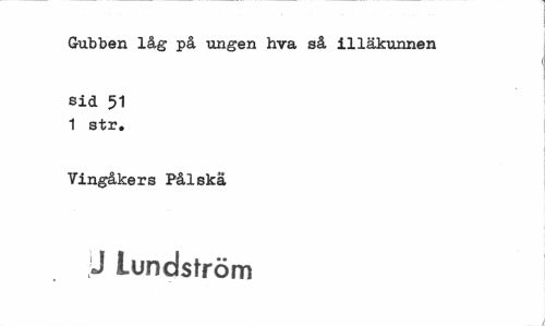 //// Gubben låg på ungen hva så illäkunnen //// sid 51 1 str, //// Vingåkers Pålska //// J Lundström ////