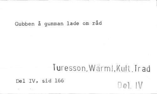 //// Gubben å gumman lade om råd //// Turesson, Wärm I, Kult. Träd //// Del IV, sid 166 . //// OeL IV ////