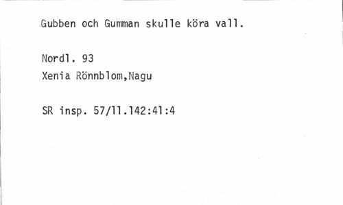 //// Gubben och Gumman skulle köra vall. Nordl. 93 //// Xenia Rönnblom.Nagu SR insp. 57/11.142:41:4 ////