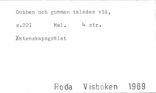 //// Gubben och gumman talades vid, s.221 Mel. k str. //// Äktenskapsgrälet //// Röda Visboken 1969 ////