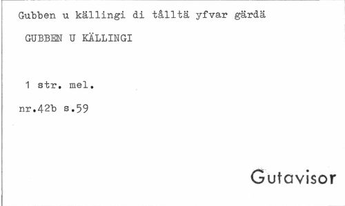 //// Gubben u källingi di tålltä yfvar gärda GUBBEN U KÄLLINGI //// 1 str. mel. nr.42b s.59 //// Gutcvisor ////