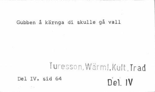 //// Gubben å kärnga di skulle gå vall //// Turesson,WärmJ,Kult.Trad //// Del IV, sid 64 , ,»» //// Del. IV ////