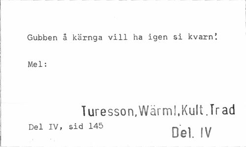 //// Gubben å kärnga vill ha igen si kvarn'. Mel: //// Turesson,Wärmi.Kult.Trad //// Del IV, sid 145 n //// Del. IV ////